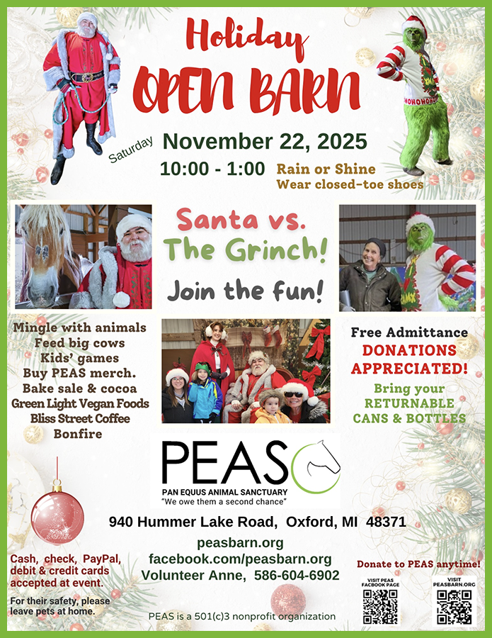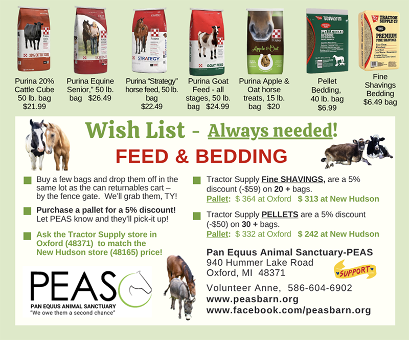 PEAS is a labor of love for our founders and volunteers. But love isn’t enough to keep the farm going. It is hard work, very hard work; carrying 60-pound bales of hay up a long driveway, often in inclement weather, cleaning stalls and hauling manure, making constant repairs around the farm.